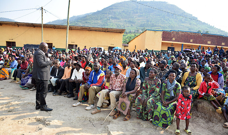 Yagize ati, “Ndatekereza ko atari n’ibintu bigoranye cyane kuko amabati abiri arahagije kugira ngo ubwiherero bube busakaye neza. Nimufatanye rero n’abo baturage iki kibazo gikemuke vuba. Reka tubahe ibyumweru bibiri kandi habeho ubufatanye bw’abayobozi n’abaturage, bityo abo bagifite ikibazo cy’ubwiherero butujuje ibisabwa na bo bajye ku rwego rw’abandi. Ikiza kandi ni uko turi no mu bihe by’izuba, aho no kubumba amatafari byoroshye. Nyuma y’icyo gihe twemeranyijwe kandi nzagaruka kureba ko byakozwe, ko ikibazo cyakemutse”.