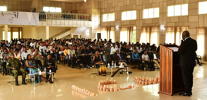 Aha ni na ho Guverineri Mugabowagahunde yahereye asaba abanyeshuri bo mu Ishuri Rikuru ry'Imyuga n'Ubumenyingiro rya Tumba kwigira ku mateka mabi ya Jenoside yakorewe Abatutsi no gufata ingamba zo kuyahindura amateka meza Igihugu kizagenderaho mu gihe kizaza.
