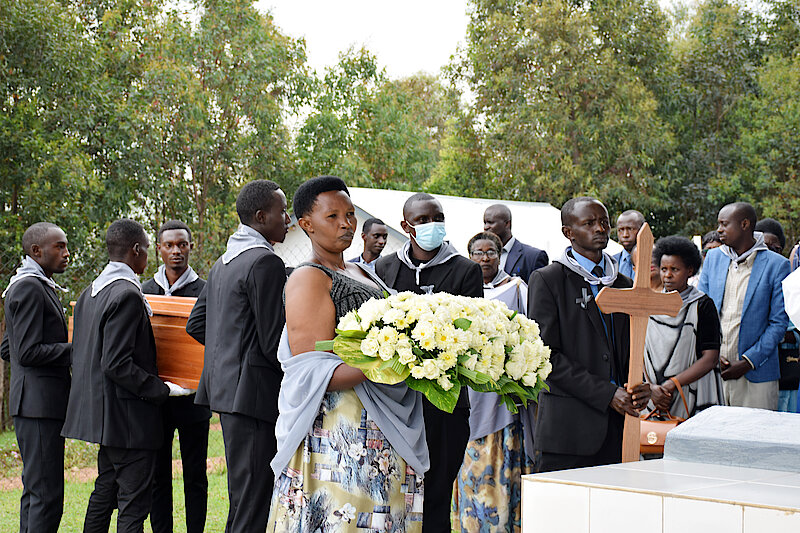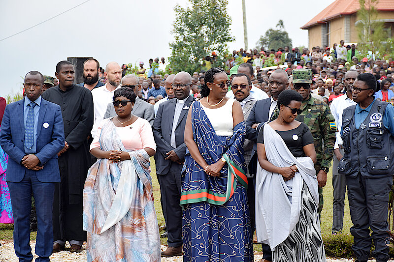 Harelimana Jean Claude wavuze mu izina ry'imiryango ifite ababo bashyinguwe mu cyubahiro uyu munsi, yongeye gusaba yinginga umuntu wese uzi ahantu hakiri umubiri w'umuntu wazize Jenoside yakorewe Abatutsi utarashyingurwa, kuyatanga kugira ngo ushyingurwe mu cyubahiro.