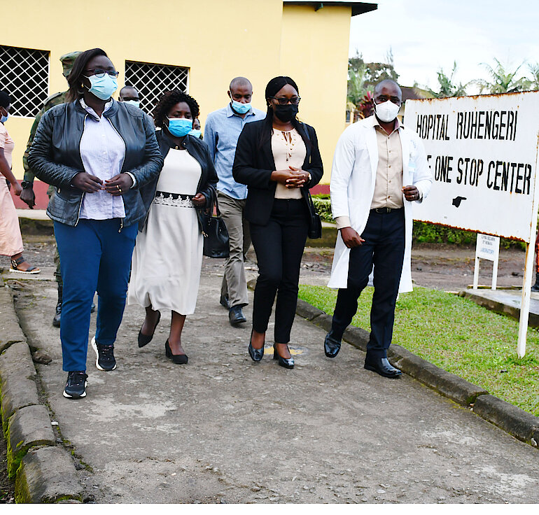 Uruzinduko rwa Minisitiri w'Uburinganire n'Iterambere ry'Umuryango mu Karere ka Musanze yarushoje asura “Isange One Stop Center” ku Bitaro Bikuru bya Ruhengeri, aho we n’abo bari kumwe basobanuriwe serivisi zihatangirwa zijyanye no gufasha ababa bahohotewe.