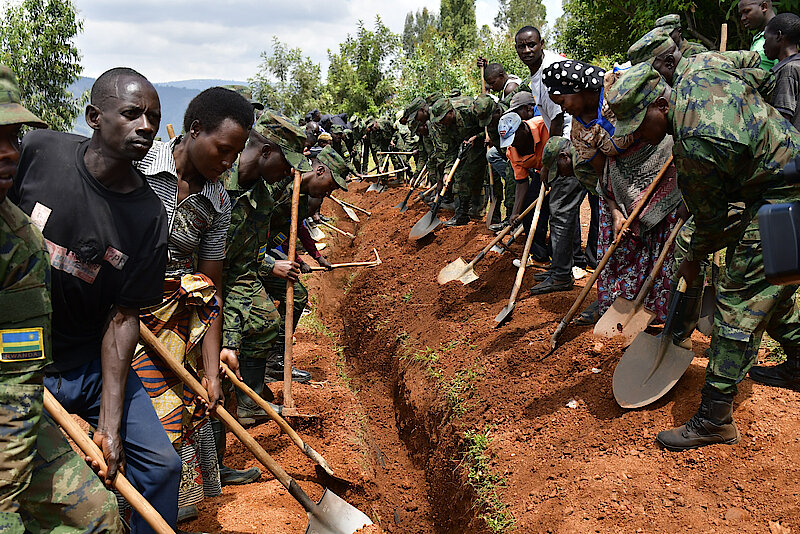 Ku rwego rw'Igihugu, ibi bikorwa byatangirijwe mu Karere ka Rulindo, aho abayobozi batandukanye, barangajwe imbere na Minisitiri w'Ubutegetsi bw'Igihugu, Dr. Mugenzi Patrice, Umugaba w'Ingabo zirwanira ku butaka, Maj. Gen. Vincent Nyakarundi, Komisieri ushinzwe Ibikorwa n’Ituze Rusange muri Polisi y’u Rwanda, CP Georges Rumanzi, Guverineri w'Intara y'Amajyaruguru, Mugabowagahunde Maurice n’abandi, bifatanyije n’abaturage b’Umurenge wa Ntarabana mu gikorwa cyo gucukura umuyoboro uzageza amazi meza ku Kigo Nderabuzima cya Cyinzuzi giherereye mu Murenge wa Cyinzuzi no ku baturage baturiye aho uzanyura. Muri iki gikorwa hakaba hacukuwe kilometero imwe na metero 100 kuri kilometero 2.5 ziteganyijwe.